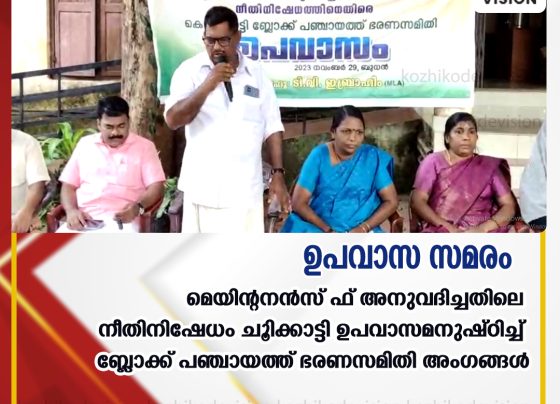 കൊണ്ടോട്ടി: കൊണ്ടോട്ടിയില് ബ്ലോക്ക് പഞ്ചായത്ത് ഭരണസമിതി അംഗങ്ങള് ഉപവാസ സമരം നടത്തുന്നു. മെയിന്റനന്സ് ഫണ്ട് അനുവദിച്ചതിലെ നീതിനിഷേധം ചൂണ്ടിക്കാട്ടിയാണ് കൊണ്ടോട്ടിയില് നവകേരള സദസ്സ് നടക്കുന്ന ഇന്ന് ബ്ലോക്ക്…