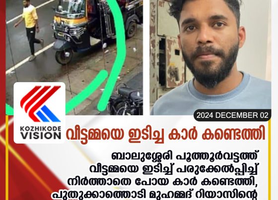 ബാലുശ്ശേരി പൂത്തൂര്വട്ടത്ത് വീട്ടമ്മയെ ഇടിച്ച് പരുക്കേല്പ്പിച്ച് നിര്ത്താതെ പോയ കാര് കണ്ടെത്തി